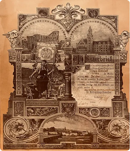 Er tüftelte wochenlang an seinen Rezepten herum, bis sie seinen Vorstellungen perfekt entsprachen. Unsere Kunden danken ihm bis heute dafür, denn der Großteil unserer Rezepte mit denen wir heute backen, stammen von Alois Adolph.